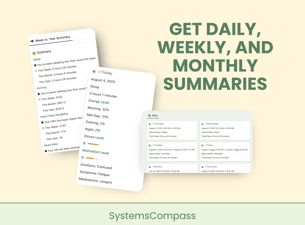 Daily, Weekly, Monthly Summaries - With the ability to view detailed summaries of your daily, weekly, and monthly health stats, you can understand trends and make decisions towards a healthier you.